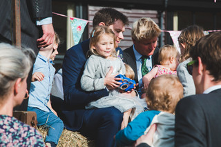 On arrival at the barn, we headed for the Orchard for a few formal photos and some photos of the bride and groom before joining the rest of the guests in the garden for tractor rides and the wedding breakfast.